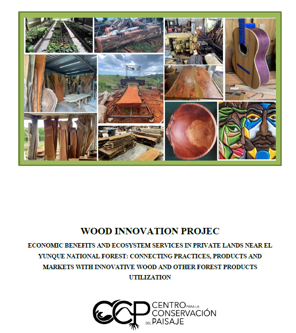 Reporte en Ingles del análisis de red social y del inventario forestal de Puerto Rico desarrollado para el PROYECTO INNOVACION DE MADERA. El informe fue desarrollado por el equipo de trabajo del Centro para la Conservación del Paisaje y su presentación se efectuó el 29 de octubre del 2022. La presentación fue grabada en vivo y esta disponible en los videos de esta sección de recursos.